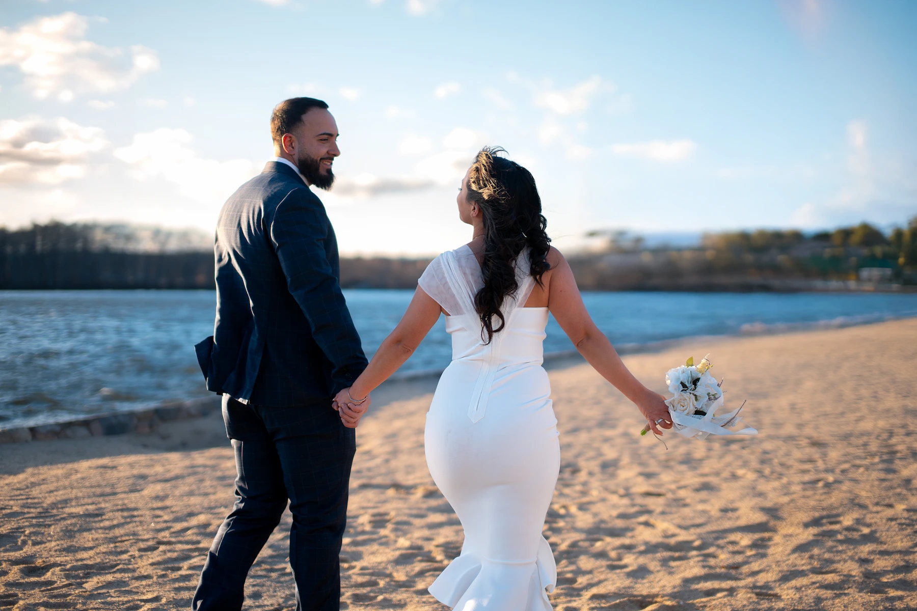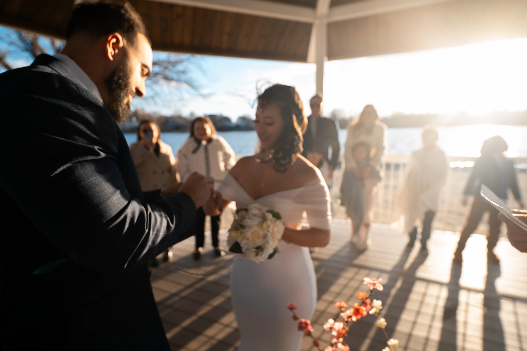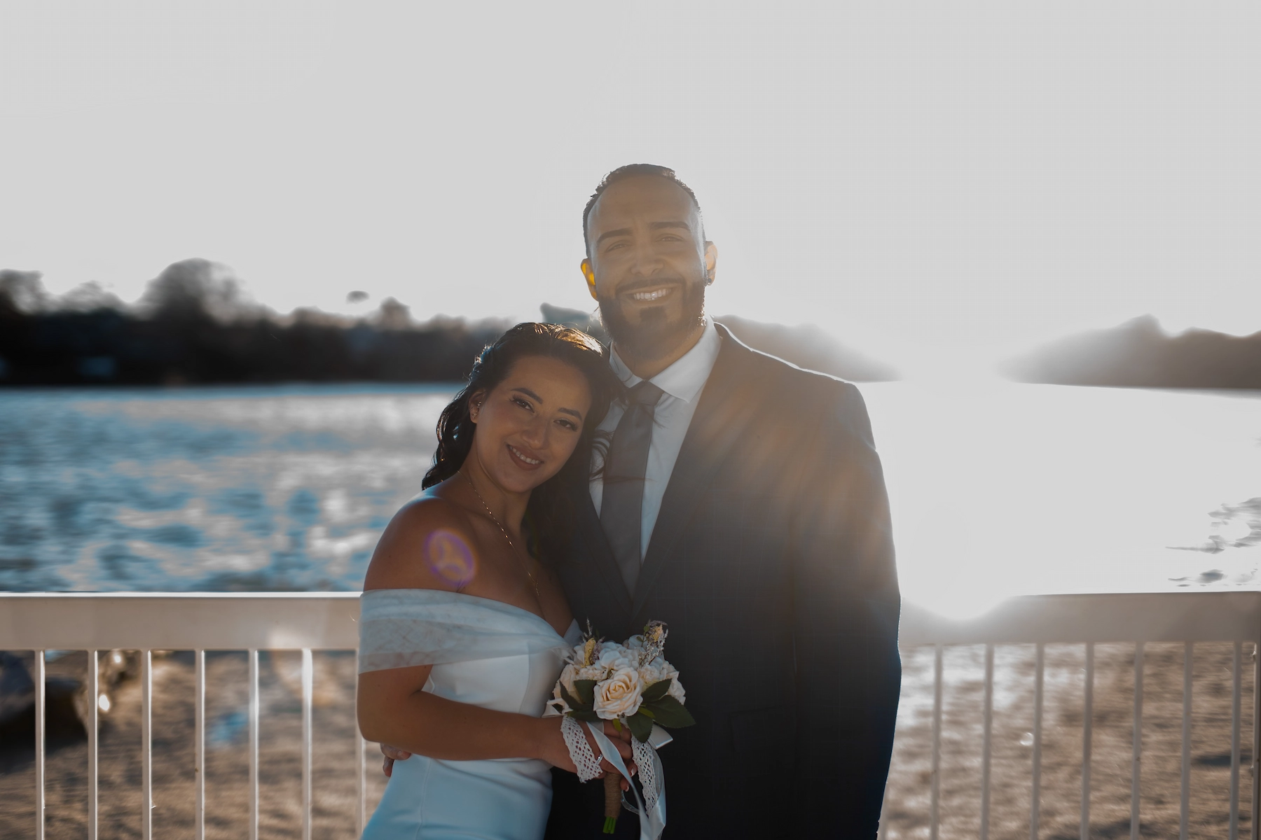 At the start of spring, under gusts of wind that danced through the air, Francely and Robby celebrated their love in a beautifully intimate ceremony by a serene lake in Braintree, Massachusetts. The centerpiece of their day—a charming lakeside gazebo—set the tone for a wedding filled with warmth, elegance, and connection.