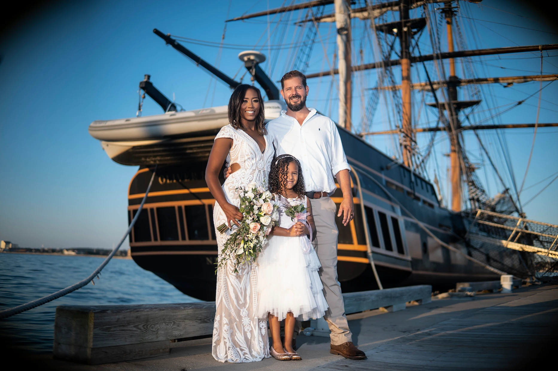 Set on a picturesque pier along the Rhode Island coast, this outdoor ceremony was the perfect mix of sophistication and natural beauty. Scarlet looked breathtaking in her flowing gown, and Stephen stood by her side with heartfelt emotion in every glance. The golden sunlight, the sea breeze, and the joyful energy of everyone present made this day unforgettable.