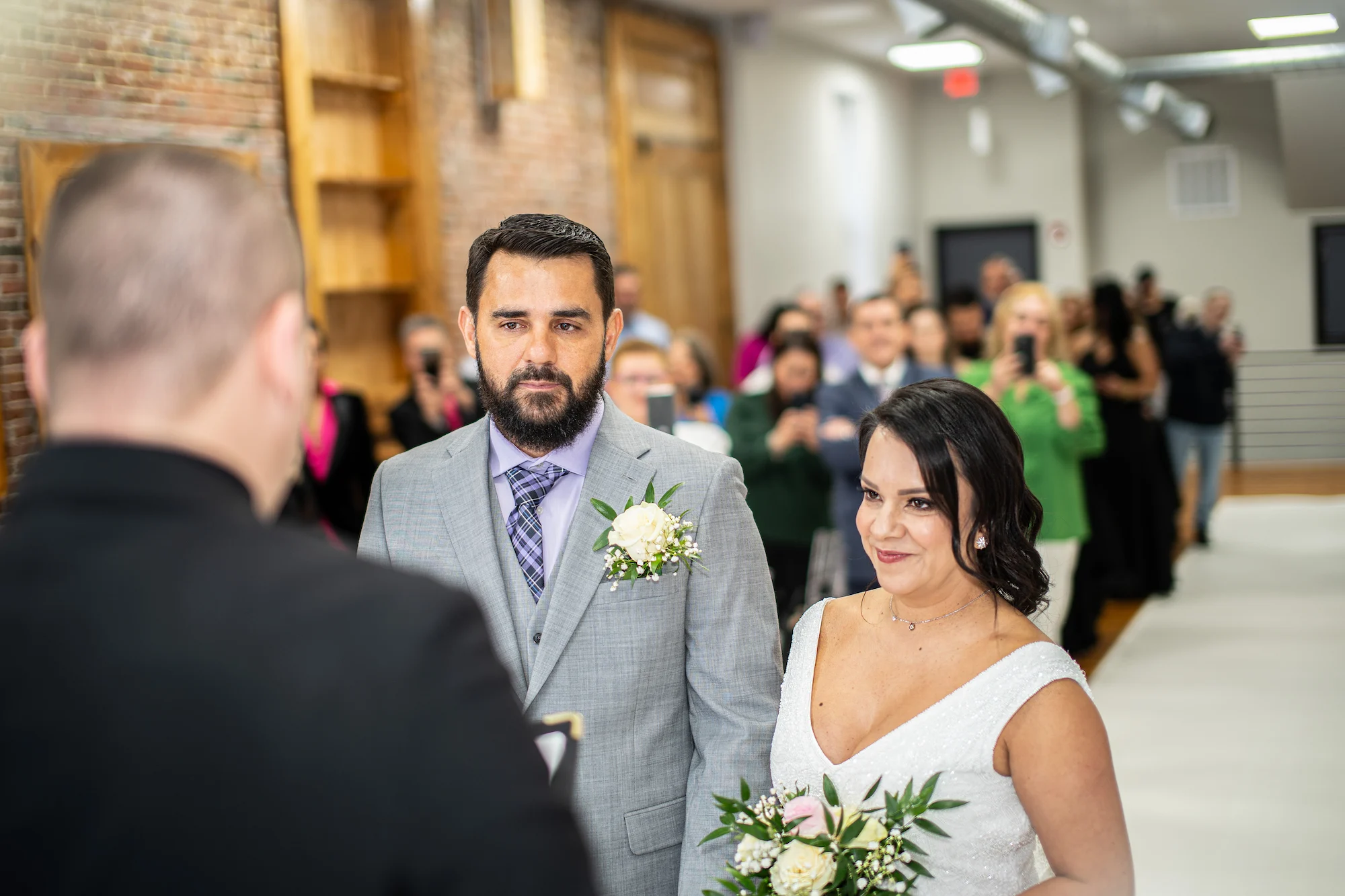 From the very beginning, I was welcomed like family. Alexandra & Martin, along with their incredible group of friends and relatives, created an atmosphere that was both elegant and inviting. Downtown Lowell offered a stunning mix of urban charm and artistic backdrops — from cobblestone streets to historic brick buildings — making it the perfect setting for capturing authentic, emotional moments.